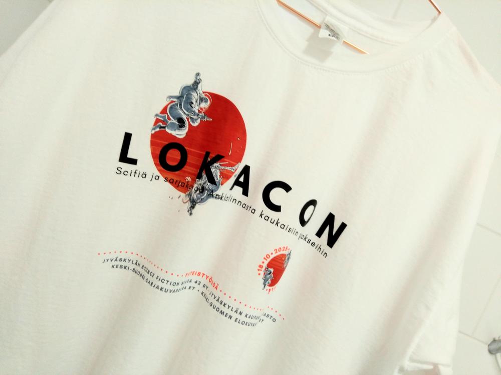 Voit tilata itsellesi tai vaikka kaverillesi pukinkonttiin päheän Lokacon-paidan! Multipaino, Voionmaankadulla hoitaa homman, kunhan otat sinne yhteyttä ja kerrot minkä kokoisen, millaisen ja minkä värisen paidan haluaisit. Heillä on vaaka A4-arkin kokoisia painoaihioita valmiina eli toimitus onnistuu varsin nopeasti. Valikoimassa on myös mm. huppareita.